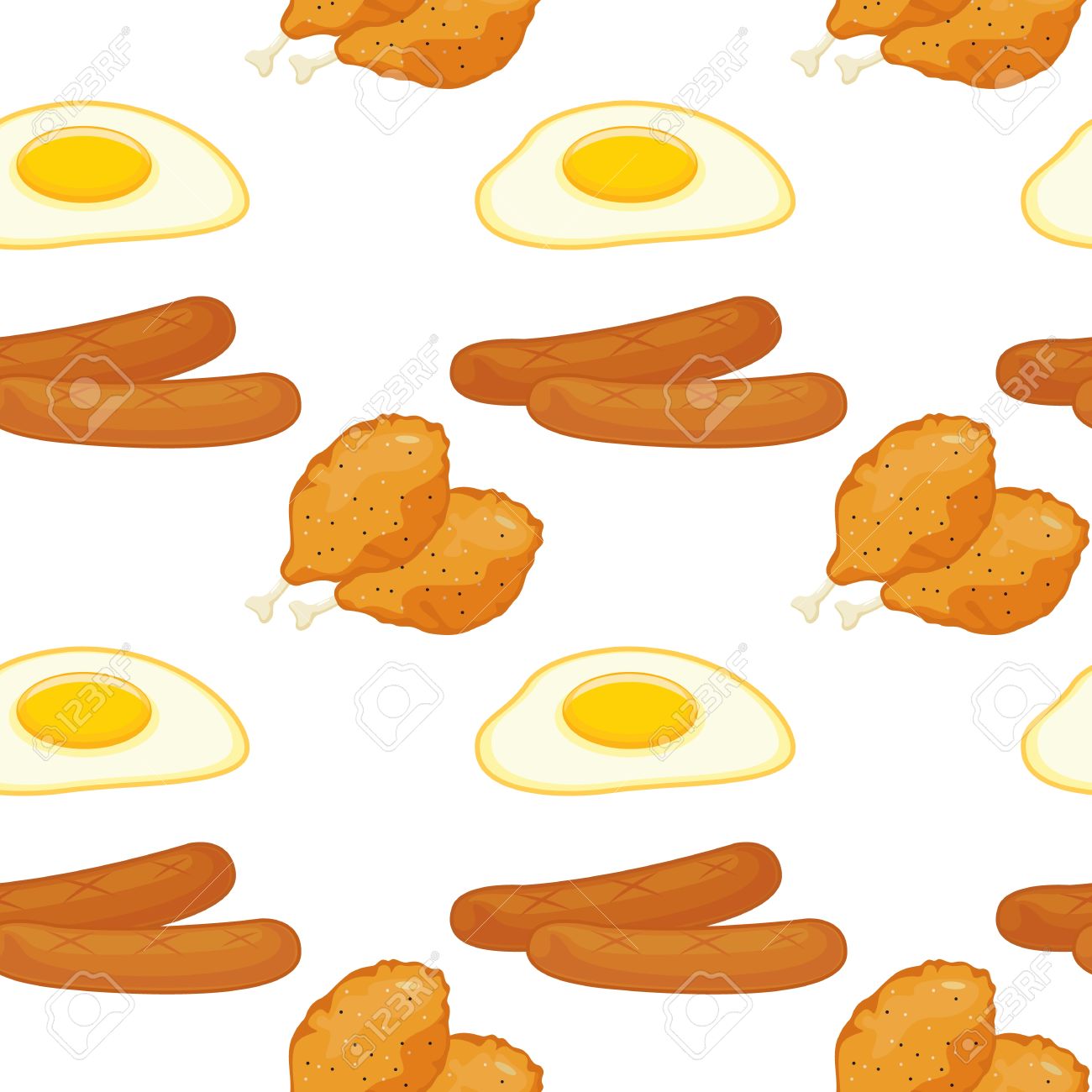 アメリカの食べ物背景や壁紙の漫画のスタイルの朝食のベクトル目玉焼きソーセージハンバーガーパンベーコンバターチーズサンドイッチフライド チキンの背景のグル イラストレーションのベクターアート素材や画像を多数ご用意 Istock
